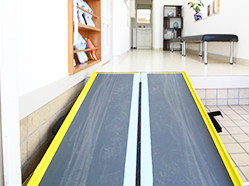 車いすの方でも、安心してスムーズにお入りいただけるスロープをご用意しております。 |